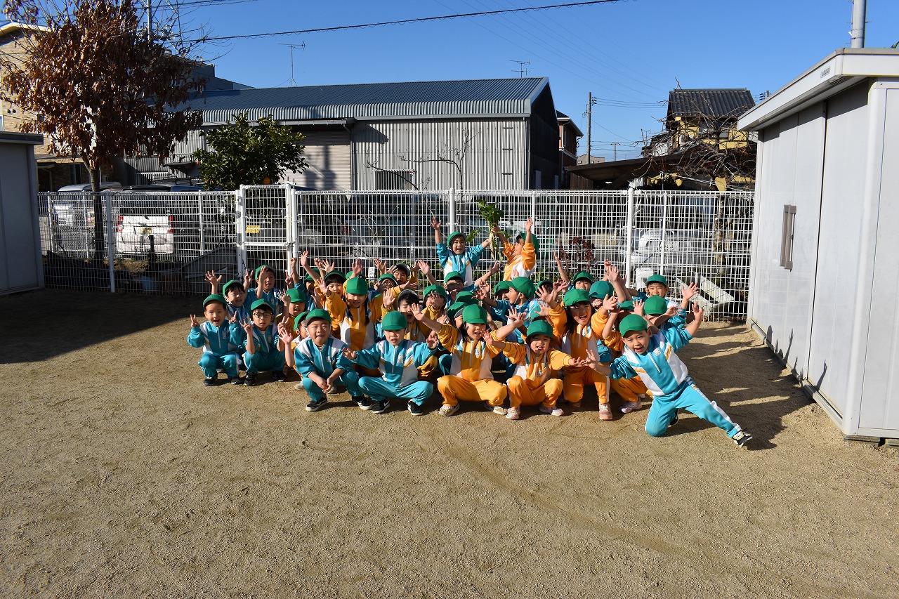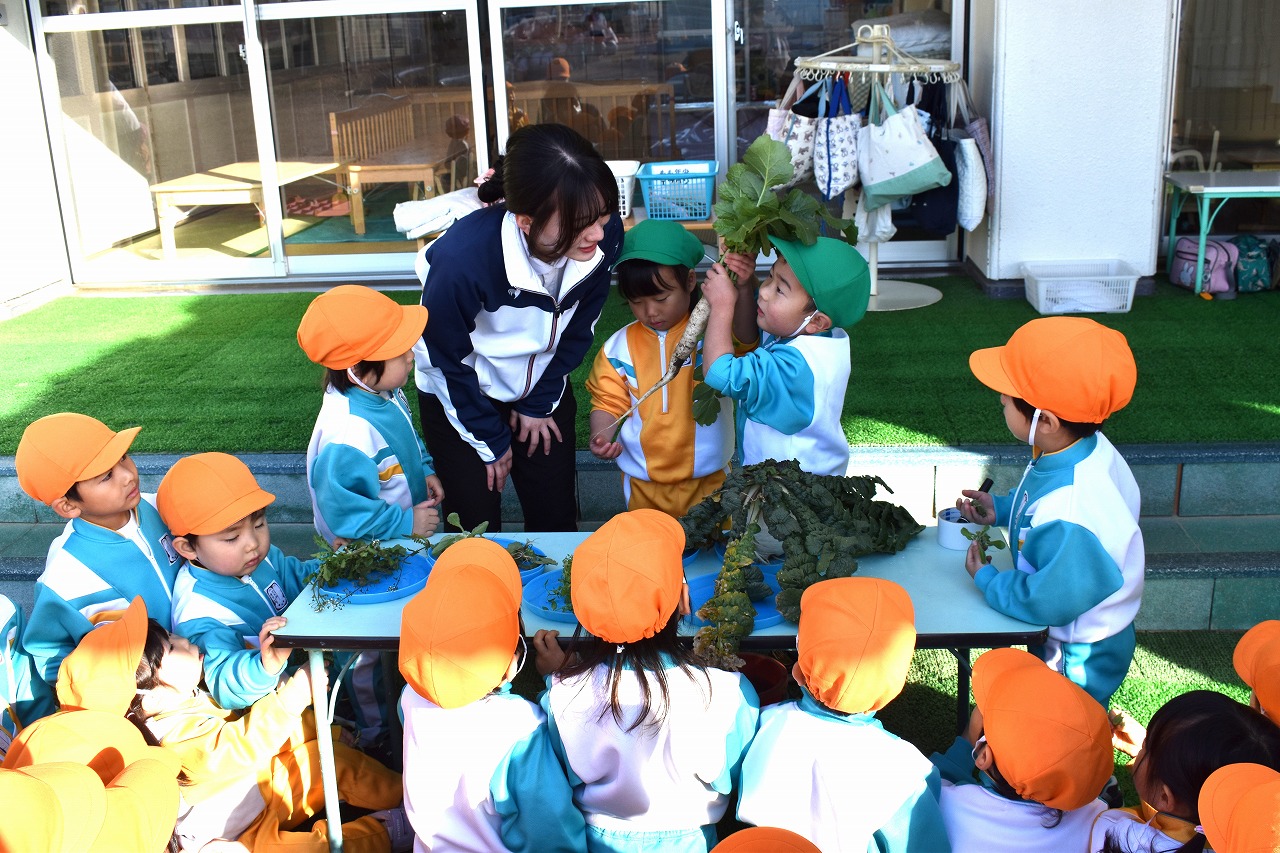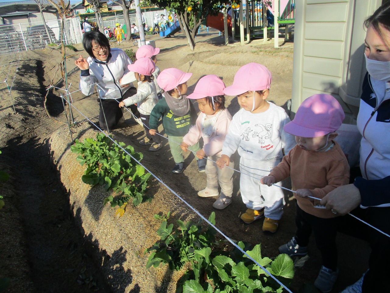 みかん組さん、みて。大きなすずしろがとれたよ。