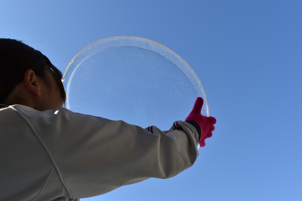 「こおりができたよー」「ぶあついね!」