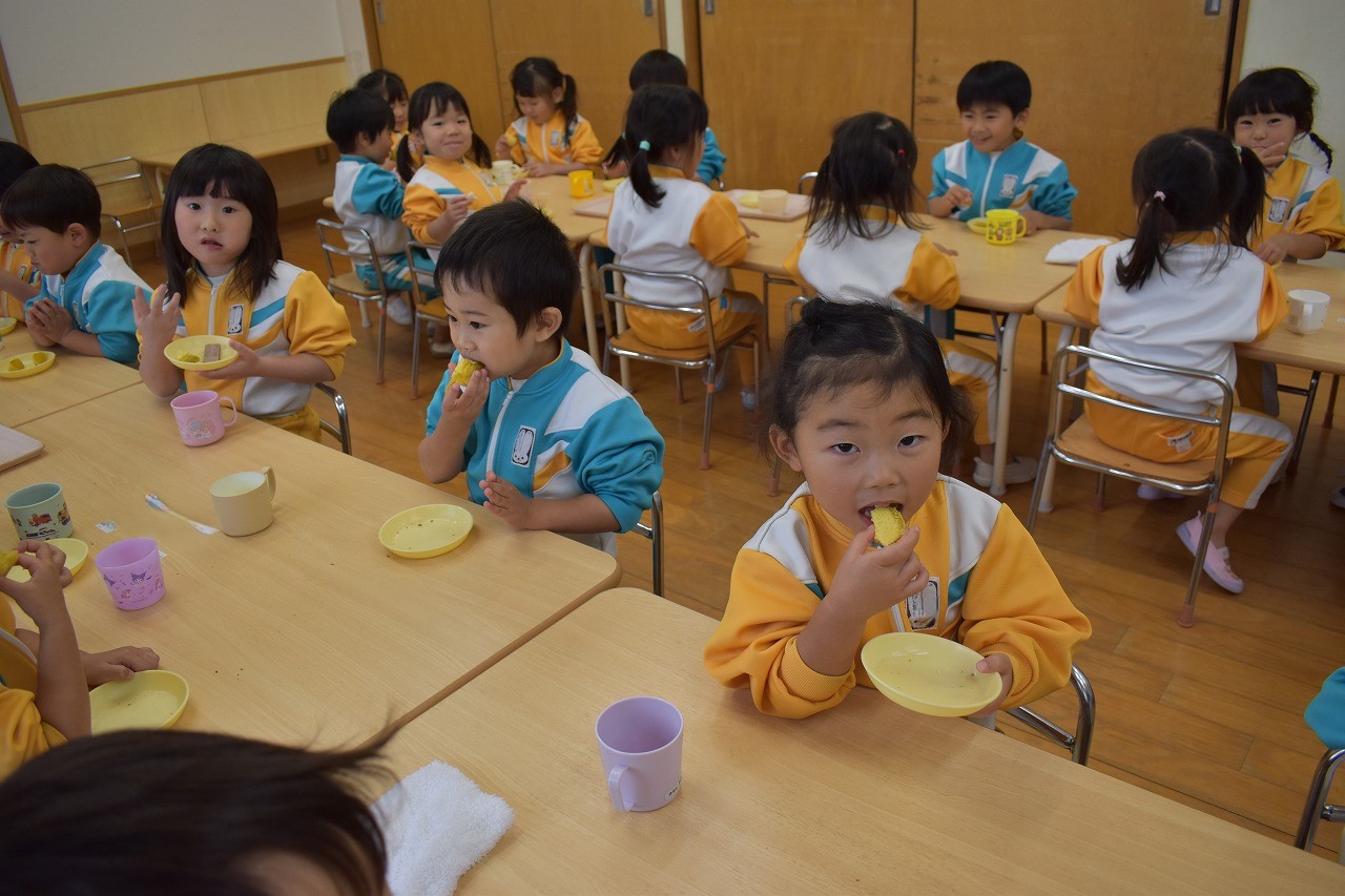 給食先生が大学芋をつくってくれたよ。おいしいな。