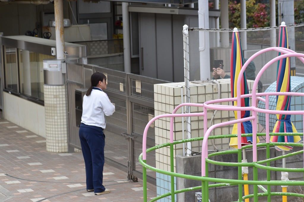 朝、いつものように園庭で遊んでいると、不審な人物がやってきました。