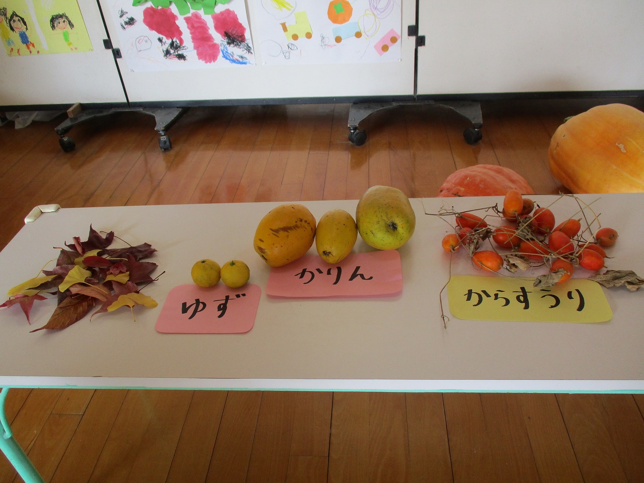 各クラスで秋の自然物を鑑賞しました。