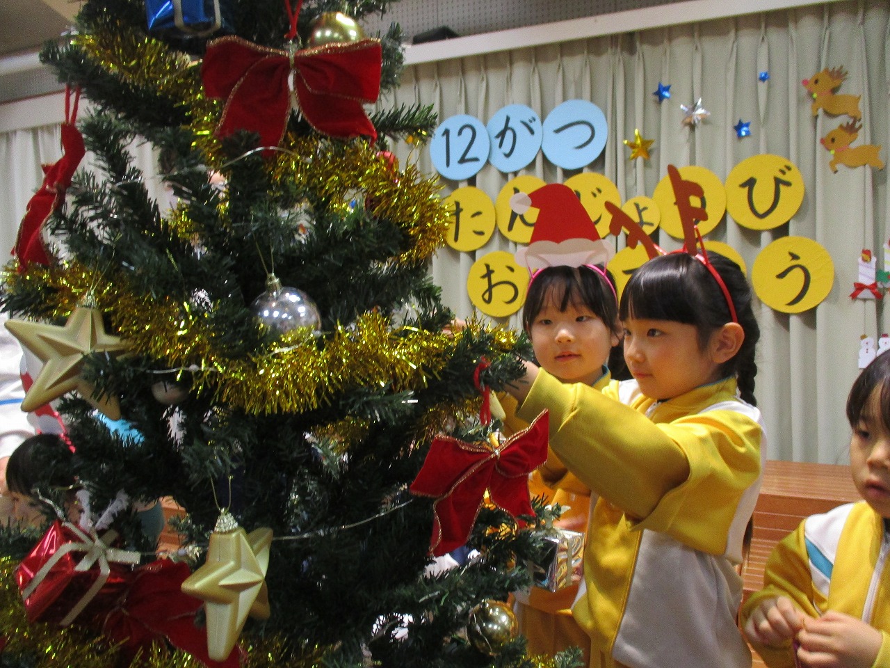 誕生児がクリスマスツリーの飾り付けをしてくれました。