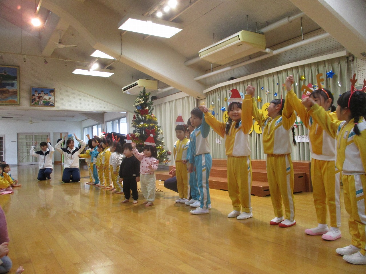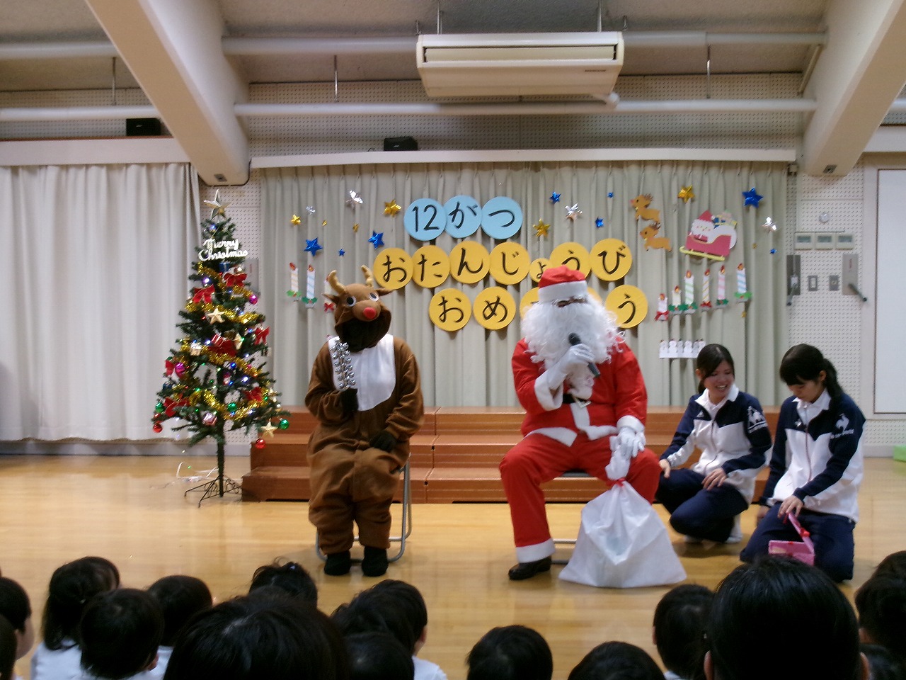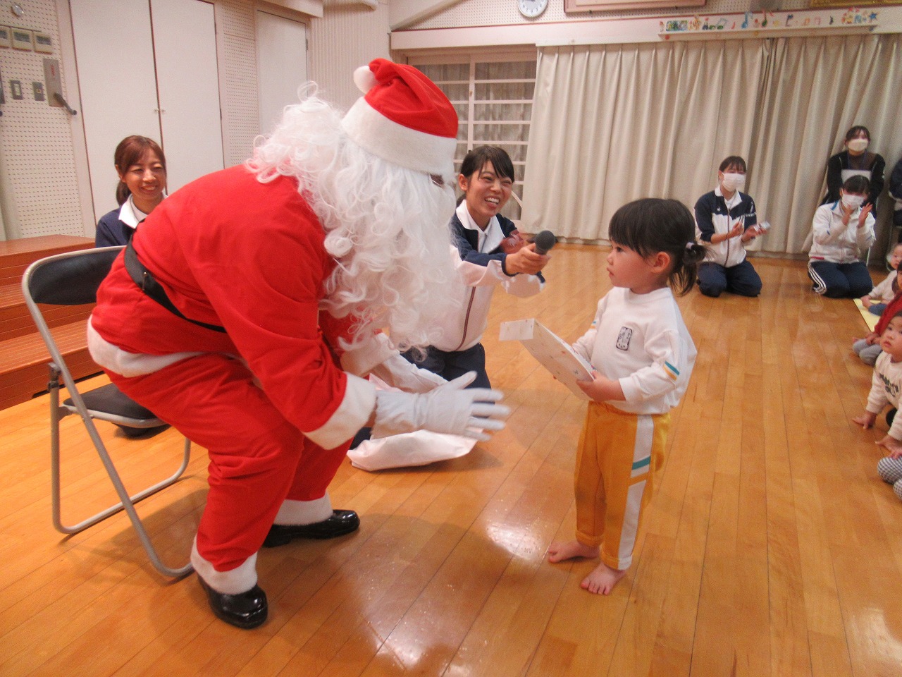 みんなの楽しい歌を聞いたサンタクロースとトナカイが橘今保育園に来てくれました!
