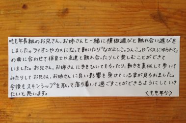 みんなで応援!! がんばってあじさい(5歳児クラス) なわとびリレー など ちいさい あき 9月30日(火) 保育園 人気 ランキング 採用 岡山 橘今 保育日誌2014年9月30日 保育テーマ(9月) 「ちいさい あき」 …