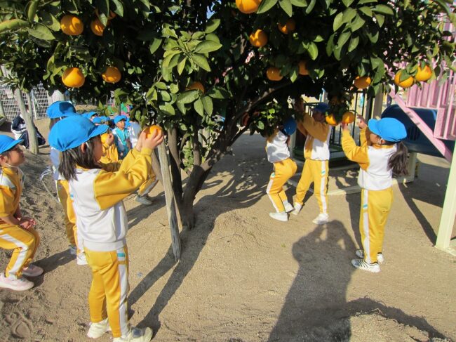 園庭のはっさくの木。 春はアゲハチョウの卵を見つけたり、夏はせみとりをしたりなど、 一年を通して、子どもたちが大切にしています。 今冬も、たくさんの実をつけてくれ、収穫を楽しみにしてきました。 いよいよ食べ…