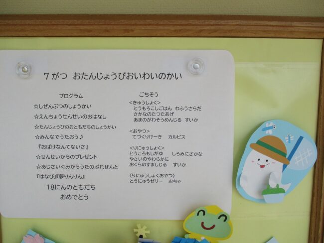 6月21日、保育参観を行いました。 沢山の保護者の皆様に参観して頂き、子ども達もとても嬉しそうです! 今夏は、子ども達が色々な方法で、星に願いを届けることになりました。 普段の、朝の会やおやつの様子を参観して頂いた後で、…