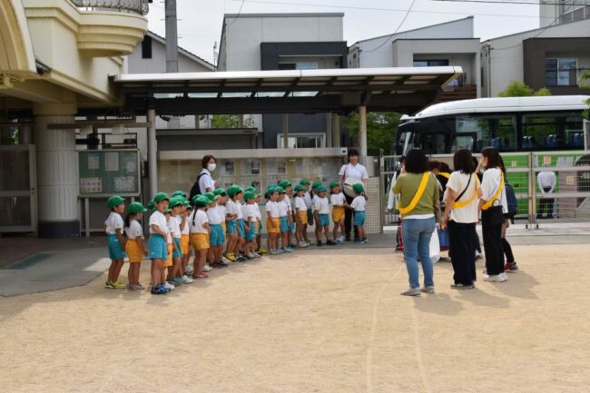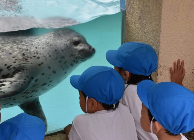 今週は、ゆり組の遠足です! 気持ちの良い天気です。 付き添ってくださる保護者の方に、『よろしくおねがいします』とご挨拶しました。 バスに乗って出発! バスの中もクイズをしたりしながら楽しく過ごしました。 駐車場から水族館…