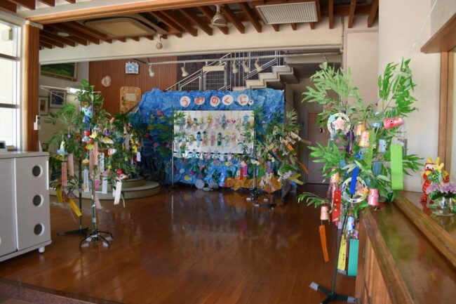 6月29日、保育参観を行いました。 沢山の保護者の皆様に参観して頂きました。 朝の会などの普段の様子を見て頂いた後、親子での七夕飾り制作をしました。 0歳児(もも年少)は、『ほしのくに』で遊んでいます。 大好きな組み合わ…