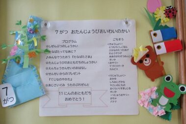 七夕誕生日会をしました。 保育園に咲いて…