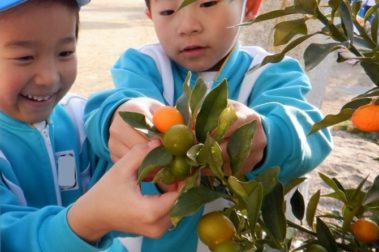 園庭の金柑がおおきく、きれいなオレンジ色…