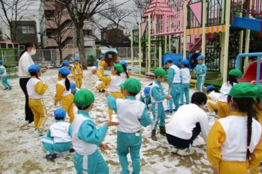 朝、保育園の園庭は真っ白になっていました…