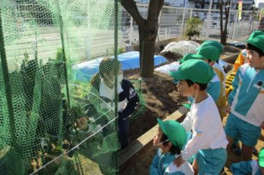 保育園の畑で、11月から育てたキャベツ2…