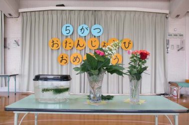 5月のお誕生日会をしました。 園庭に咲い…