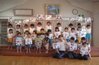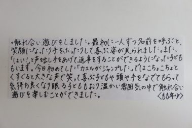 お友だちを自主的に待っていたこどもたち 思わずカメラを向けました! あじさい(5歳児クラス) 5月31日(火)の保育実践 5月の保育テーマ「五月の風に乗って」 岡山 橘今 保育日誌2016年5月31日 5月の保育テーマ 「五月の風に乗って…