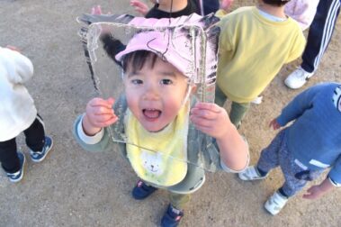 氷点下の朝。 園庭の温度計は、ー1℃でし…