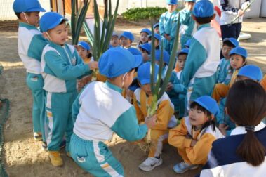 15日に園庭でとんど焼きをしました。 お…