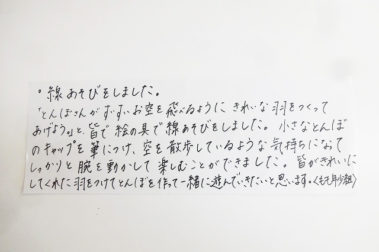 とんぼ みーつけたっ! れもん(2歳児クラス) 9月4日(金)  保育テーマ  ちいさい あき    岡山 橘今保育園