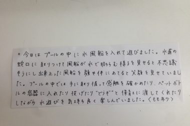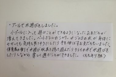 お水が大好きな生き物たちにお水をかけてあげよう!! れもん(2歳児クラス) 7月13日(月) 保育テーマ みずのくに ほしのくに 岡山 橘今保育園 保育日誌2015年7月13日 7月・8月の保育 みずのくに ほしの…