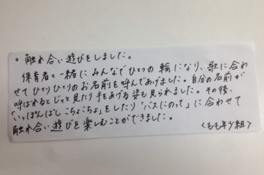 バトンリレー あじさい(5歳児クラス) 4月27日(月)の保育実践  うれしい はる  岡山 橘今保育園
