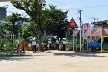 ミーン、ミン、ミーン 園庭は朝からにぎや…