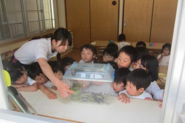 スイカにお水やり、アゲハチョウ元気でね!、円ドッジ・・・ 子どもたちは今日も様々な生活体験、遊びを体験しておりました。 保育園 人気  ランキング 採用 岡山 橘今